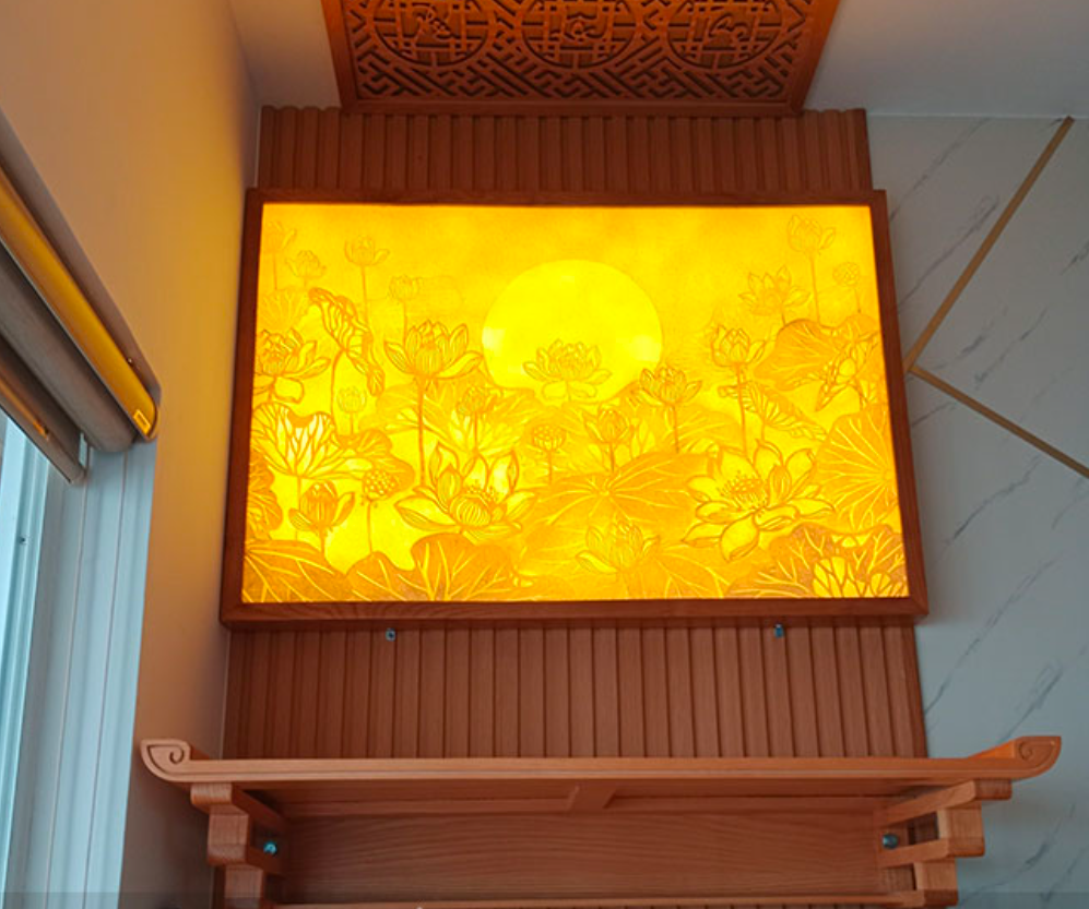 - Phong thủy: Chọn kích thước theo lỗ ban, đặt ở vị trí trang trọng, tránh đối diện cửa chính hoặc khu vực ồn ào.
