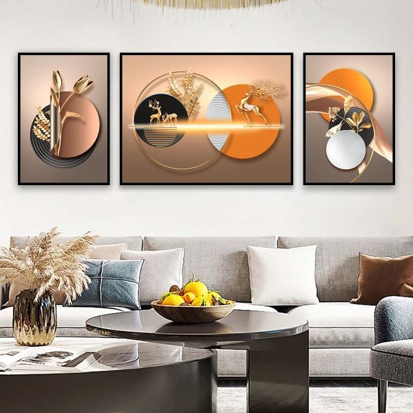 - Phong thủy: Chọn tranh theo mệnh (ví dụ: mệnh Thủy hợp tranh cá chép, hoa sen, màu xanh biển; tránh màu vàng, nâu đất). Treo tranh ở độ cao phù hợp tầm mắt, tránh treo quá thấp hoặc quá cao để giữ bố cục hài hòa.