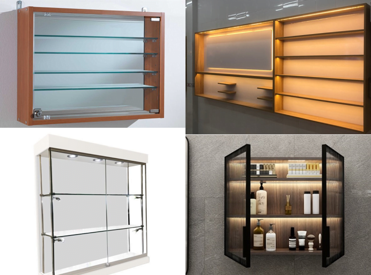 - Cửa hàng hoặc nhà hàng: Tủ kính trưng bày mỹ phẩm, đồng hồ, trang sức, tăng sự thu hút và bảo vệ sản phẩm khỏi bụi bẩn.