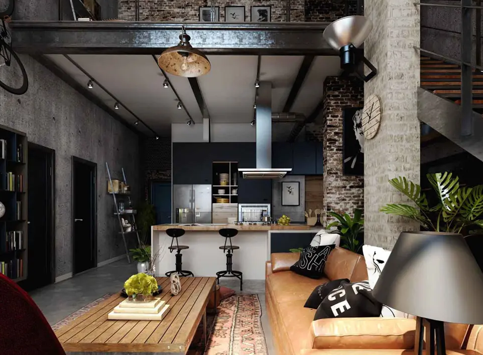- Đặc điểm: Lấy cảm hứng từ các nhà máy hoặc nhà kho, phong cách này nhấn mạnh vào vẻ thô mộc, mạnh mẽ nhưng vẫn hiện đại.