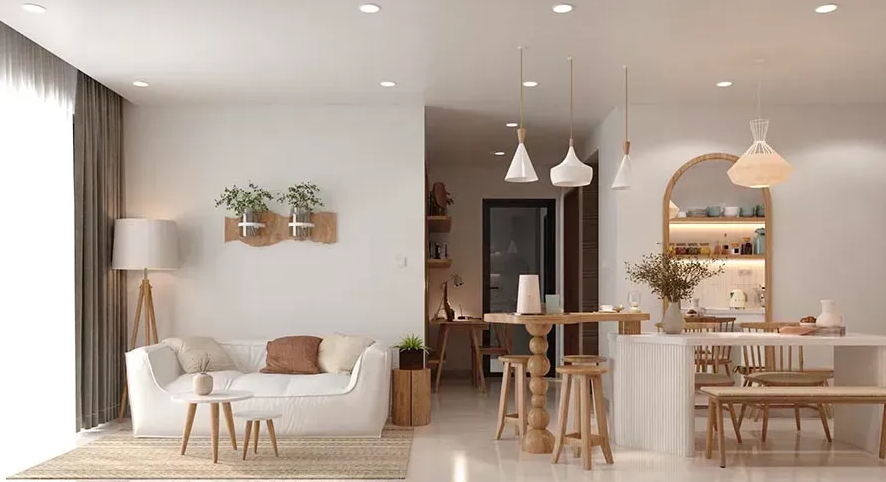 - Đặc điểm: Kết hợp giữa sự tối giản và ấm cúng, lấy cảm hứng từ vùng Bắc Âu. Phong cách này nhấn mạnh vào sự thoải mái và gần gũi với thiên nhiên.